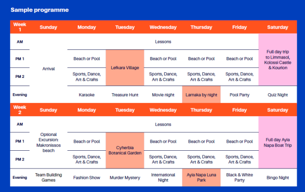 Program je namijenjen mladim učenicima koji žele kombinovati učenje engleskog jezika sa iskustvom ljeta u inostranstvu. U toku sedmice učenici imaju časove engleskog jezika u internacionalnim grupama, nakon čega slijede dnevne aktivnosti i izleti.